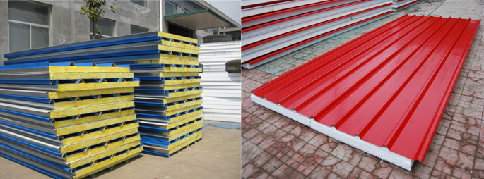 机器简介:全套彩钢保温板生产线是由:装料开卷系统、成型主机、切断装置组成,复合机设备部分由装料开卷、喂板、压筋、涂胶、加温、复合、卷边、翻边(企口用)、开槽、整边、气动、自动切割、工业全自动电脑操控系统组成,本机器设备采用高低速计量泵、变频调速、(或无级调速)、电脑控制,计量准确。机器设备可同多种规格型号的平板、瓦楞板。能生产厚40-300MM,宽950-1200MM的夹芯复合板设备;厚50-300MM,宽950-980MM的瓦楞型复合板。