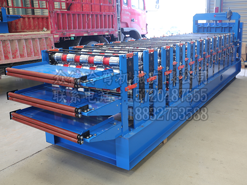 三层彩钢瓦压型机是一机三型号彩钢瓦生产设备,一台机器可以生产三种型号的彩钢瓦建材,该机器由原料放料架、引料平台、压型主机、成型后切割等几部分组成,生产的彩钢瓦外观工整美观、漆纹均匀、、,广泛应用于工业民用建筑,如厂房、仓库、体育馆、展览馆、影剧院等房面和墙体。 三层彩钢瓦设备一机多用,不仅节省了占地面积,成本也降低,三层压瓦机结构轻巧,,特别适合场地小的客户选购。 |