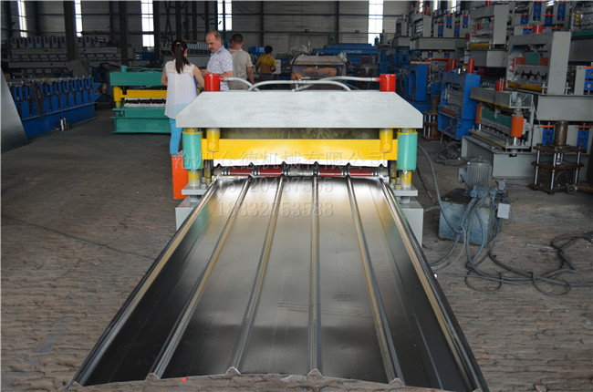 900加宽型1080不锈钢板压型设备: 普通900压型机进板一米,这款加宽型压型机进板宽度可达1.25米,并且1米宽的板材同样可以生产,该设备不但可以加工普通的彩钢板,还可以加工不锈钢板,加工板材厚度为0.2-0.8mm之间,多适于一些欧洲或俄罗斯,现国内市场也很受青睐,因横截面比较宽,所以外观感觉提升档次,板型美观大方,倍受推崇。