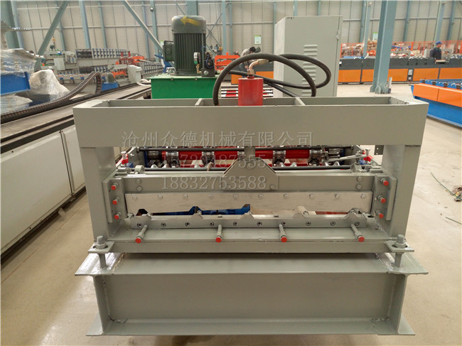 :众德机械 名称:840钢板压型设备 成品用途:用于铺设房屋的屋顶或外墙 电机功率:3kw 机器重量:2.1T 成型排数:11排 生产速度:10-15米/分钟 剪切方式:液压切断 传动方式:链轮+链条传动 外形尺寸:5800*1500*1500mm 加工板材厚度:0.2-0.8mm 可加工材质:彩钢板(其他材质均可定制) PLC控制器:采用(可自选)