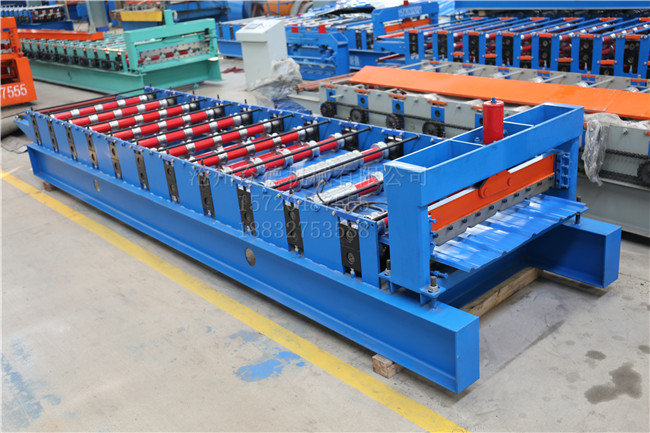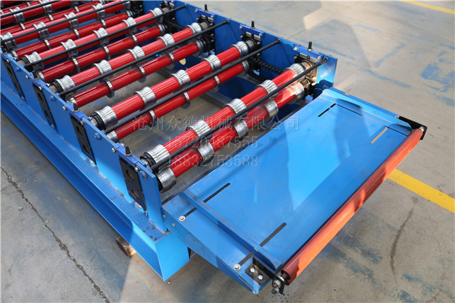 :众德机械 名称:900钢板压型设备 成品用途:用于铺设房屋的外墙 电机功率:3kw 机器重量:2T 成型排数:11排 生产速度:10-15米/分钟 剪切方式:液压切断 传动方式:链轮+链条传动 外形尺寸:5800*1500*1500mm 加工板材厚度:0.2-0.8mm 可加工材质:彩钢板 PLC控制器:采用(可自选)