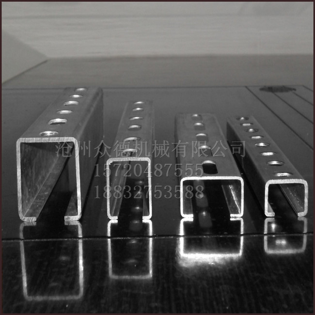 全自动光伏支架冷弯成型设备通过手动调整或换几组轧辊可完成不同规格支架的生产要求,压辊模具采用的数控车床加工而成,压辊模具经高温淬火处理,Cr12材质模具轮,精车、精磨、镀硬络后加工而成,该压辊,抗磨损,使用寿命长!带钢经过高精模具精工冷弯成型,保持成品C型的良好外观,无滑漆,实现零磨损! 全自动太阳能光伏支架压型机设备主要由开卷装置、进料导向平台、在线冲孔装置、辊压成型机、切断装置、出料架、液压系统、电器控制系统等部分组成。具有结构合理,操作简单,,生产工艺流程短,产品用途广等特点。