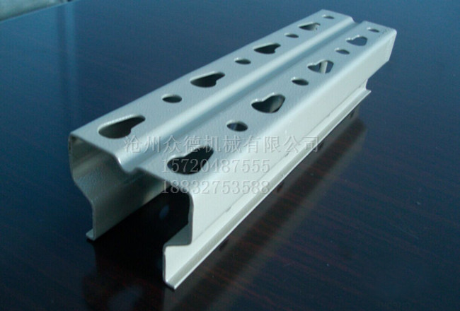 描述: 全自动冲孔货架立柱压型机,采用加粗双链轮链条传动方式,上下轴轮配备联动齿轮,传动力。该机器设备还可以通过换模具的方法,生产加工其他规格的货架型钢,经济实用。