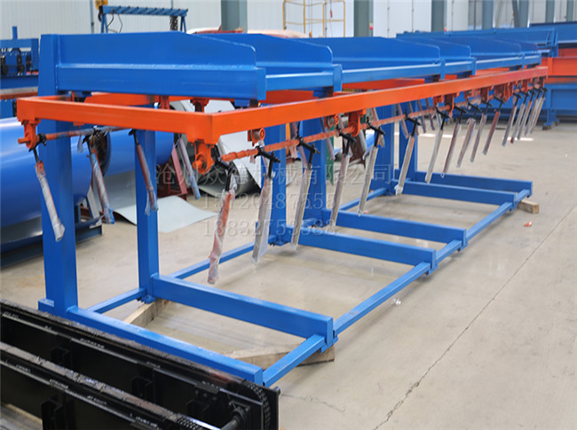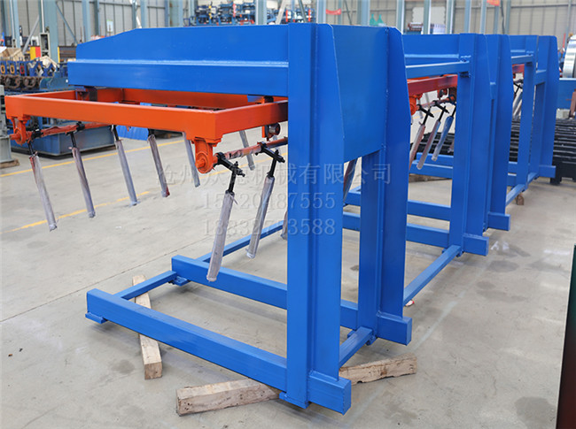 自动码垛机是机、电一体化高产品。该码垛机可满足彩钢板长度7米内的生产需要,机器加工后的成品板材经过码垛机后,自动码放整齐,可按照要求的编组方式和层数,完成对各种彩钢瓦的码垛。 优化的设计使得垛形紧密、整齐。