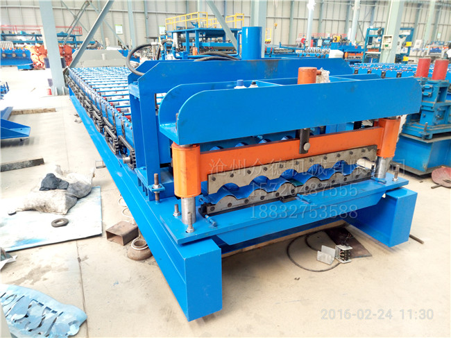 竹节琉璃瓦压型机器,该设备为全自动电脑控制,自动加工生产;电机的主功率为4KW,带动力强,该机器的滚轮采用机床加工而成,每个工件的精度!机器组装由钳工,水平测量组装。控制器为PLC电脑控制器,加工板材的厚度为0.2-0.8mm,全自动液压模具自动切断,生产,操作简单;机器采用电脑控制器,触摸大屏幕,中英文结合,操作简单便捷,可同时输入多组不同生产数据,一件启动加工生产;省时省力,率! 另我公司还配备有抛丸打砂除锈设备,我厂生产的全部设备均经过抛丸除锈处理,机器在自然环境下生产时,不易生锈,从而延长机械的使用寿命。